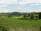 Celí unavení stoupáme nahoru klikatou cestou. Nahoře u brány na nás fouká osvěžující vítr. Výhledy jsou tu krásné, je tu i vidět Růžák - nejvyšší kopec v okolí.